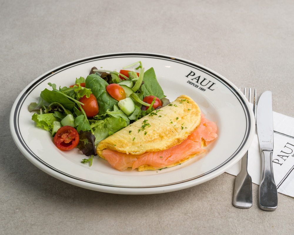 Maak je keuze uit omelet natuur, met spek of met gerookte zalm.